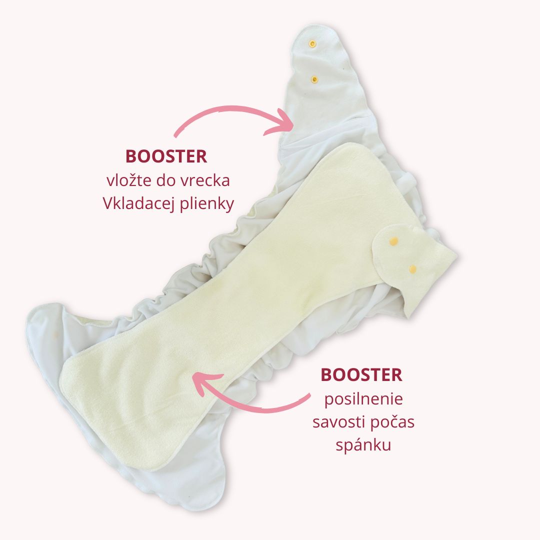 - Na noc alebo vyššiu záťaž: Vkladacia plienka + BOOSTER + Vrchné PUL nohavičky