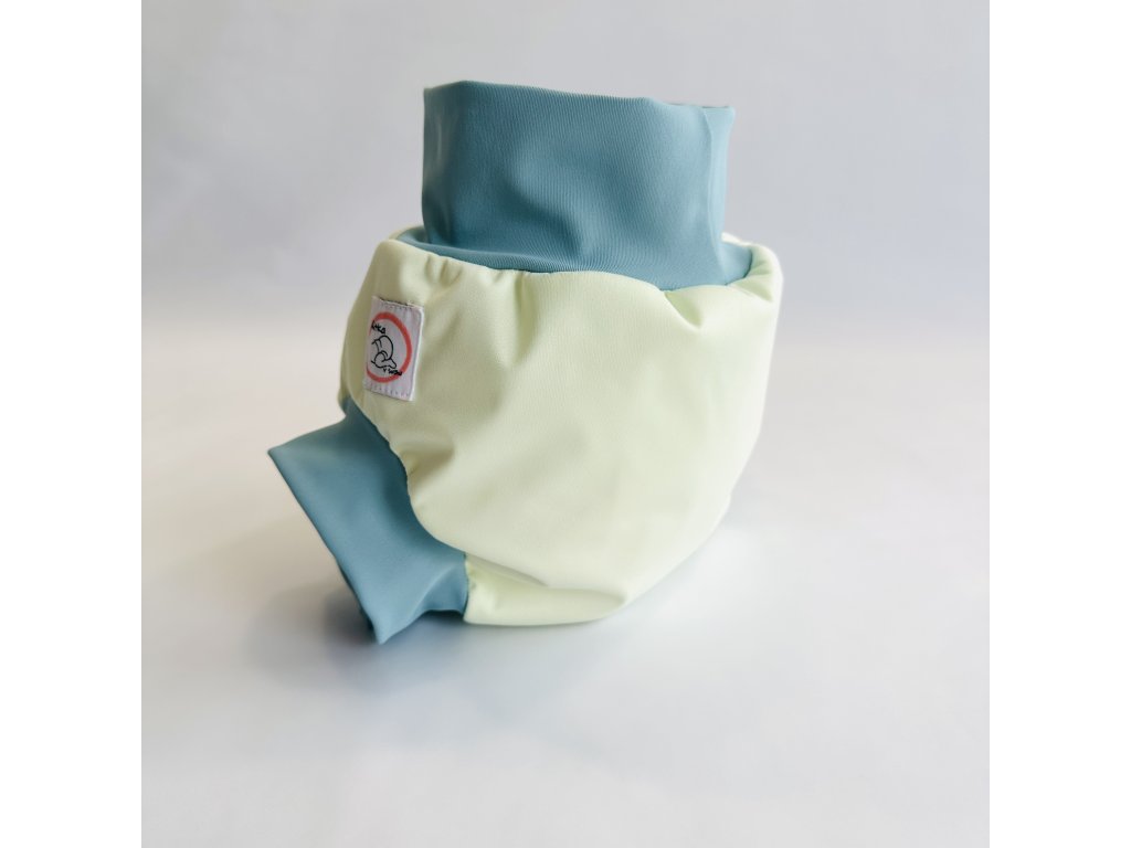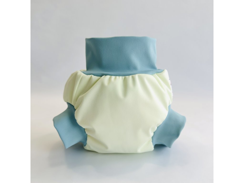 Plavky sú šité z dvoch vrstiev materiálu. Vonkajšia vrstva je pružný, vodonepriepustný PUL, mäkší a príjemnejší na dotyk oproti neoprénu. Vnútorná dotyková vrstva má separačnú funkciu, ktorá zachytáva nehody. Vysoké elastické lemy okolo pása a nožičiek dobre tesnia a zároveň zabezpečujú dieťatku maximálne pohodlie.