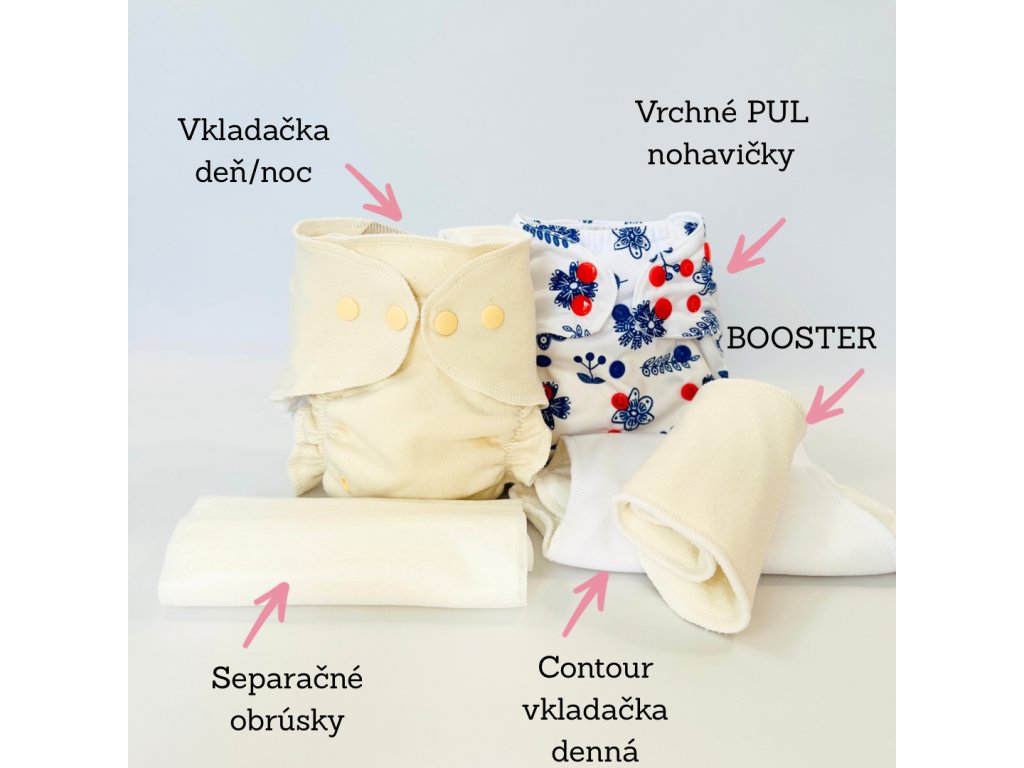 Sada je vhodná prakticky na celé obdobie plienkovania. Produkty vďaka prispôsobiteľnej veľkosti rastú spolu s dieťatkom od prvého dňa až do chvíle, kedy sadne na nočník. BOOSTERY zo sady môžete následne použiť v odplienkovacom období, ako extra savú vrstvu do TRÉNINGOVÝCH NOHAVIČIEK.