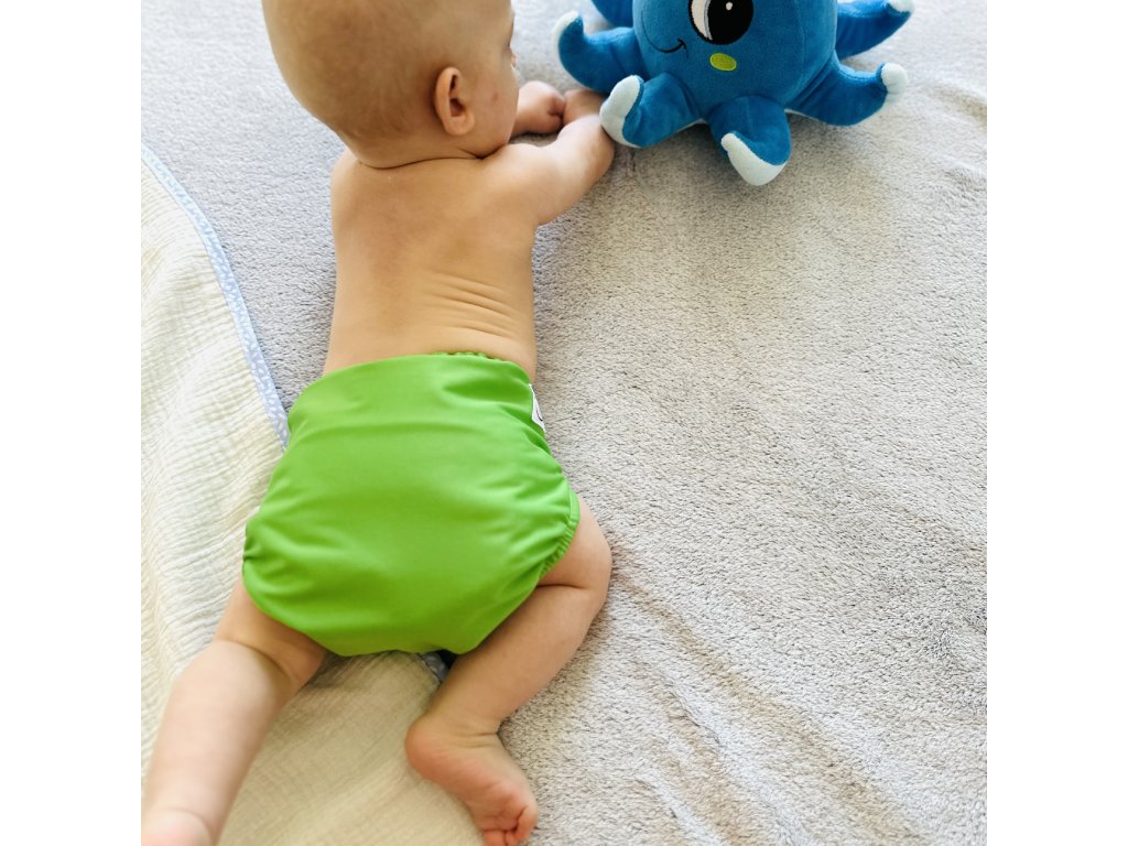 Vnútornú vkladačku jednoducho zapnete na bábätko a cez ňu natiahnete vrchné PUL nohavičky. Tie stačí medzi prebaleniami iba prevetrať alebo opláchnuť – preto ich v sade nájdete menej ako vkladačiek. Uschnú rýchlo a sú pripravené na ďalšie použitie.