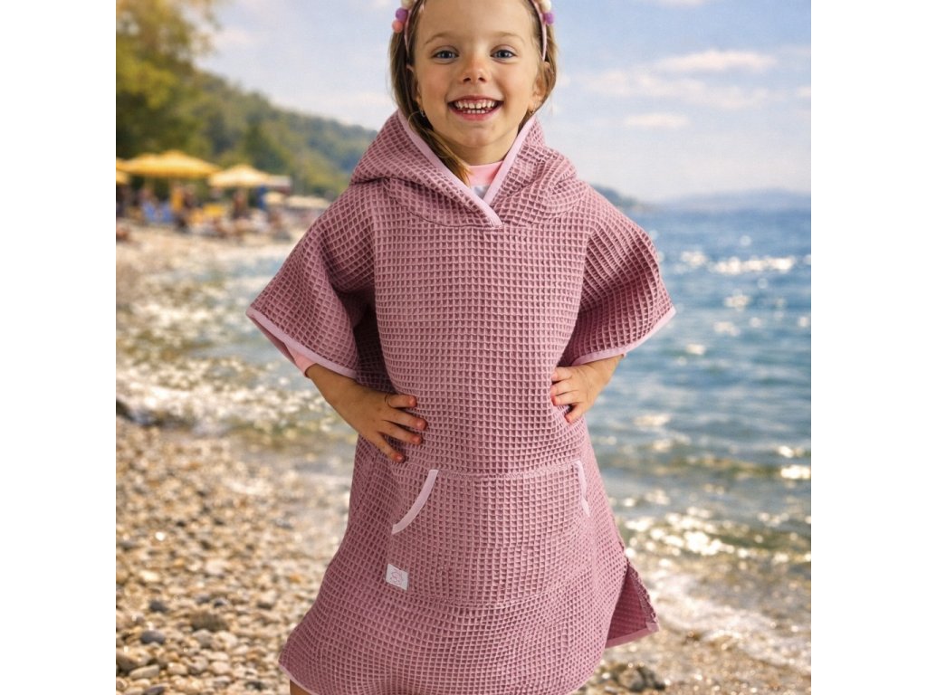 Poncho wafle pre deti v 3 veľkostiach. Ochrana pred slnkom, na pláž, k moru aj na bežné nosenie počas letných dní. Certifikovaná bavlna pre jemnú detskú pokožku. Ručná výroba v našej dielni.