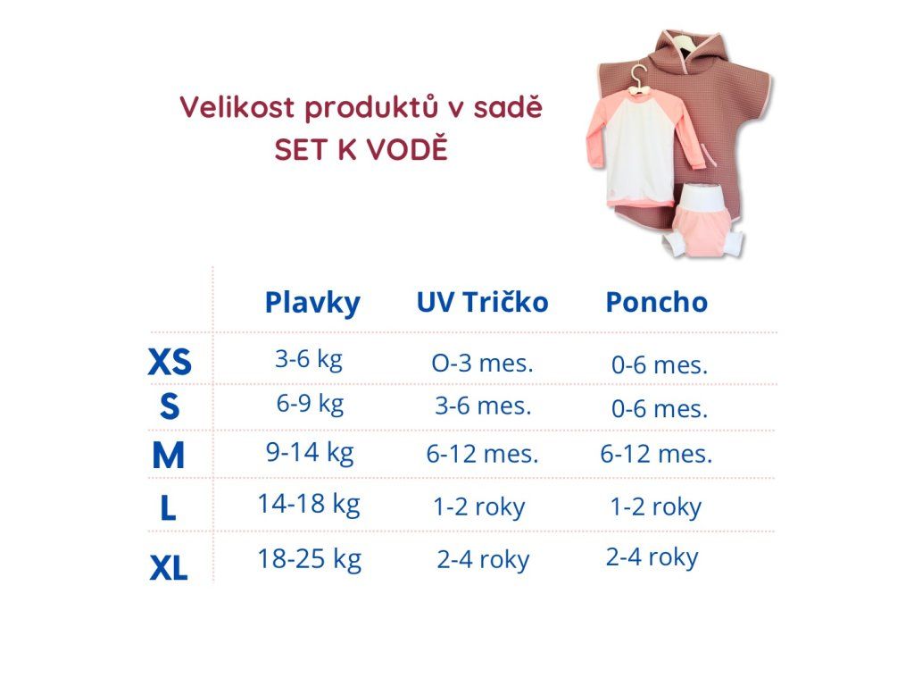 | účel: | Sada k vode (plavky, poncho, UV kúpacie tričko) |