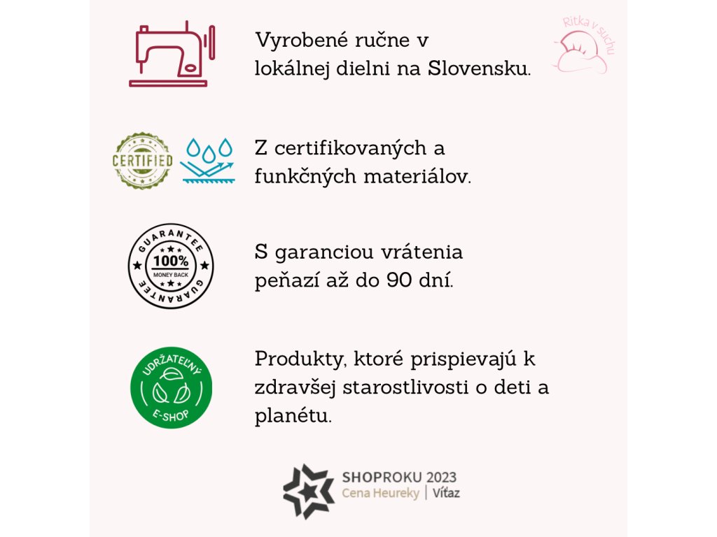 🧵 Všetky produkty vyrábame ručne v našej lokálnej dielni na Slovensku, z certifikovaných a kvalitných materiálov.