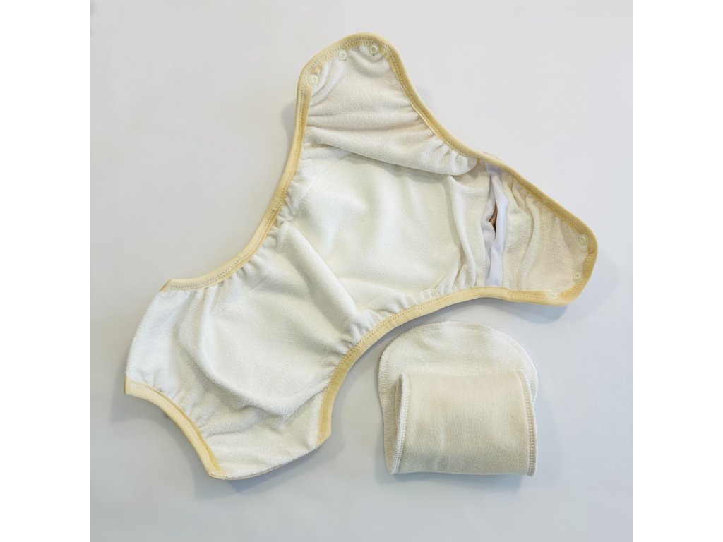 | Certifikácia: | Vrchná vrstva: PUL - 100% PES laminovaný polyuretánom - priedušná membrána, Dotyková vrstva: Bambusové froté (80% bambus, 20% PES - tvorí len osnova, na ktorú je natkané froté), Savé jadro v strede: Mikrovlákno (100%PES), Lemovacia gumička (48% EL, 52% PA), Patentky: plast |